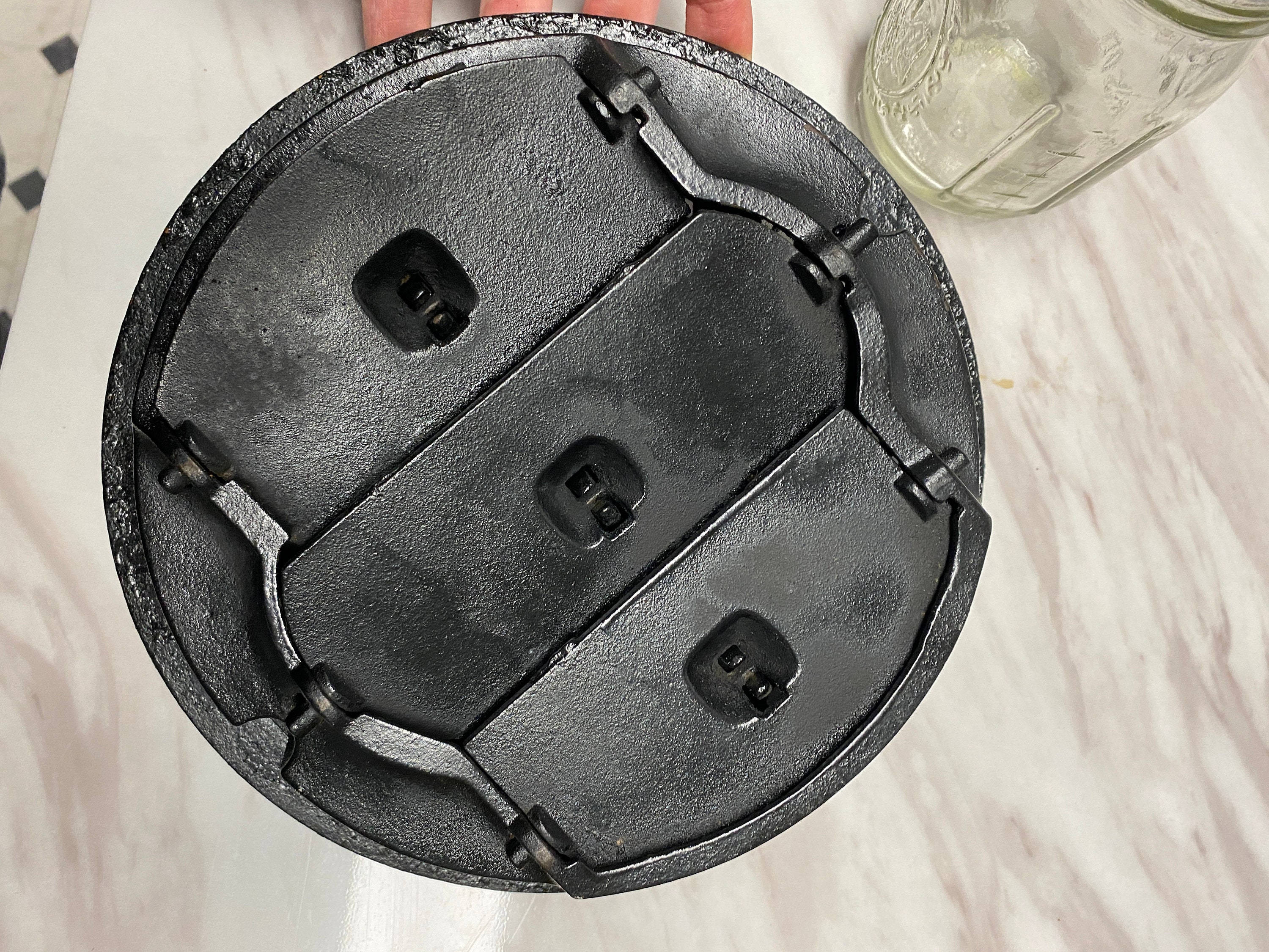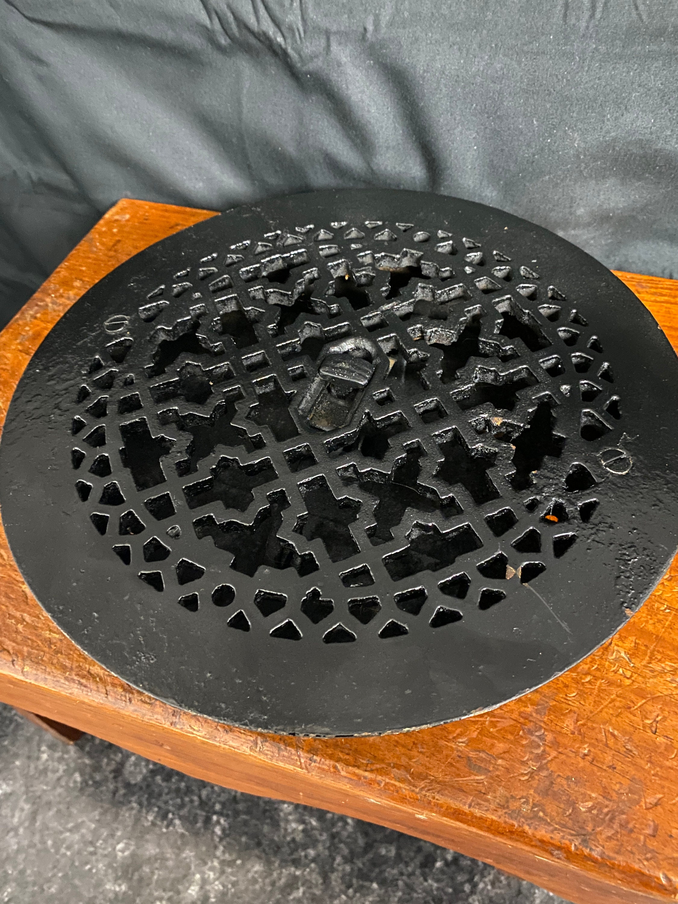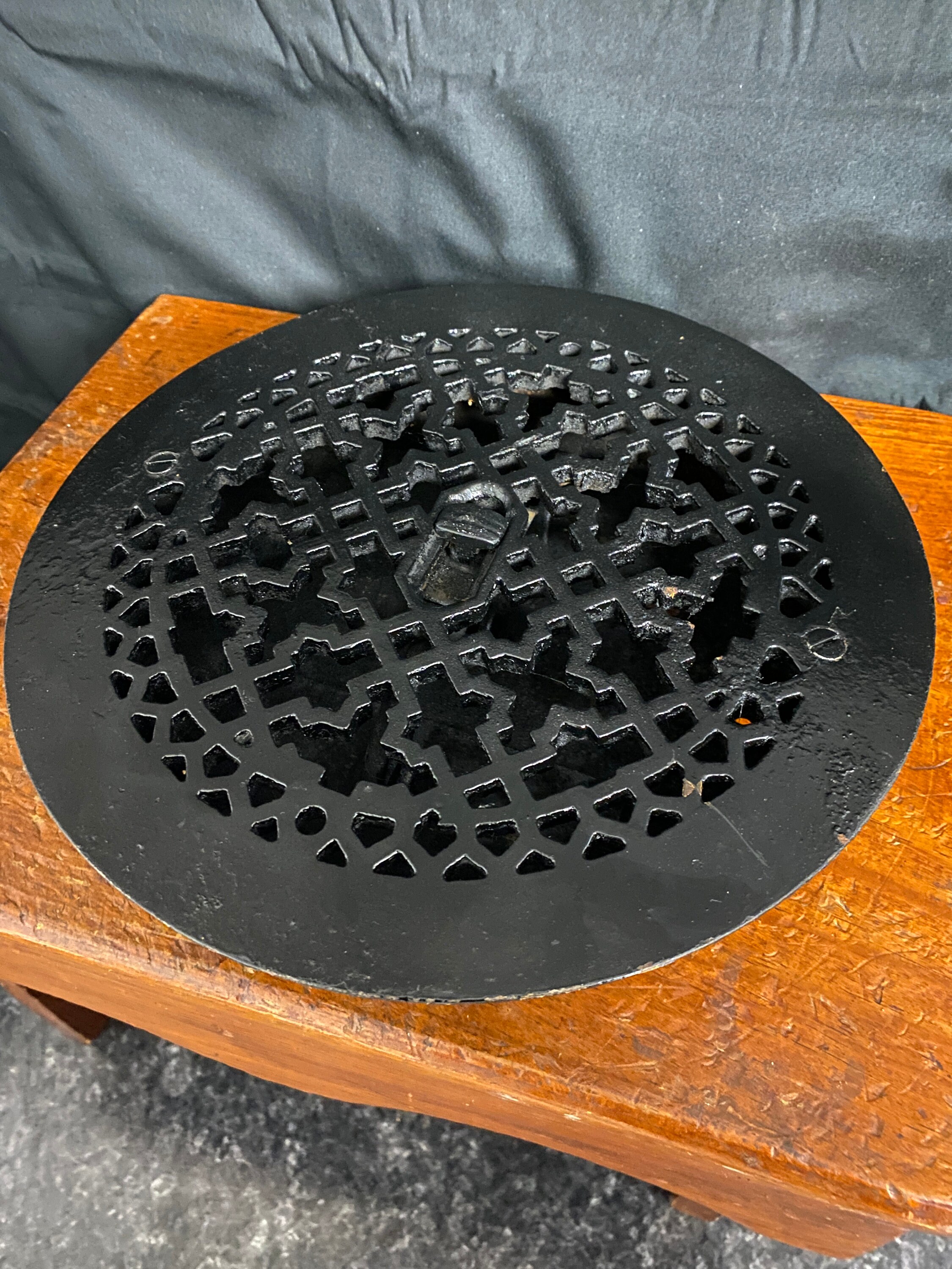 A rare find from a farmers auction in Pennsylvania. A vintage, cast iron floor vent in very good condition for its age. There are signs of age for sure. As you can see in the photos, the inside has collected a fair amount of rust over the years but the vent opens and closes as it should. This is just a fantastic piece that you don't see very often.