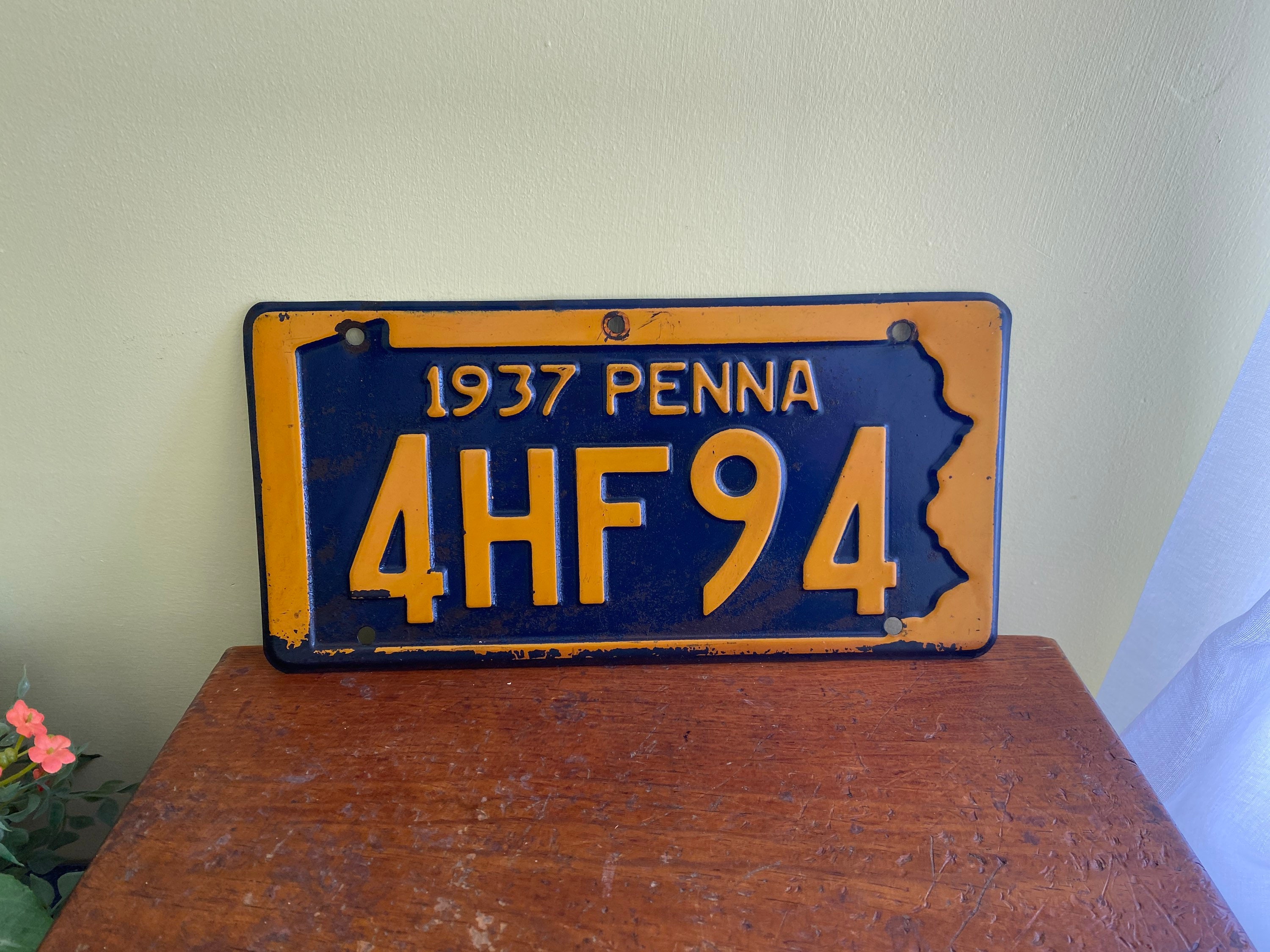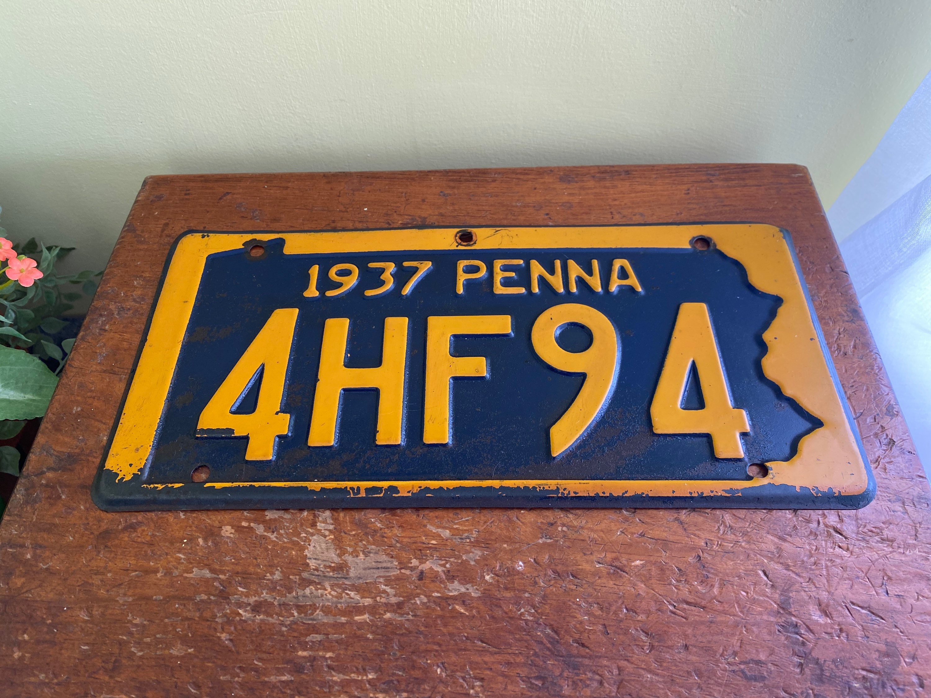 1937 Pennsylvania license plate. Some of the paint has worn off but overall, really good condition for its age.