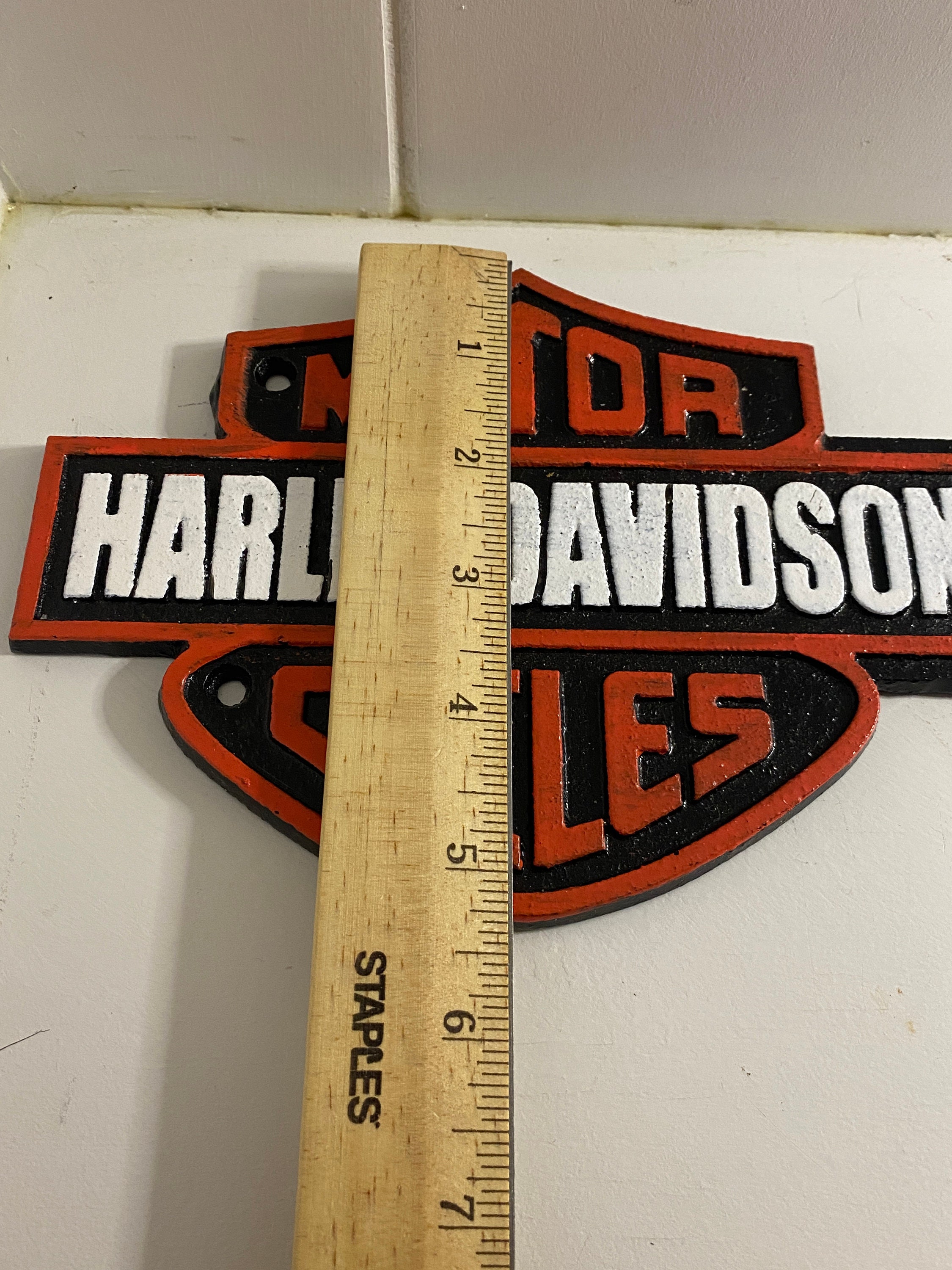 This Harley-Davidson sign is almost certainly a modern reproduction. The paint looks new and I can just tell that it's not very old. Still these are great collectable signs made of real cast iron. Hang it up in the garage and years from now, when the paint will fades, you'll have a fantastic looking rustic Harley-Davidson collectable.