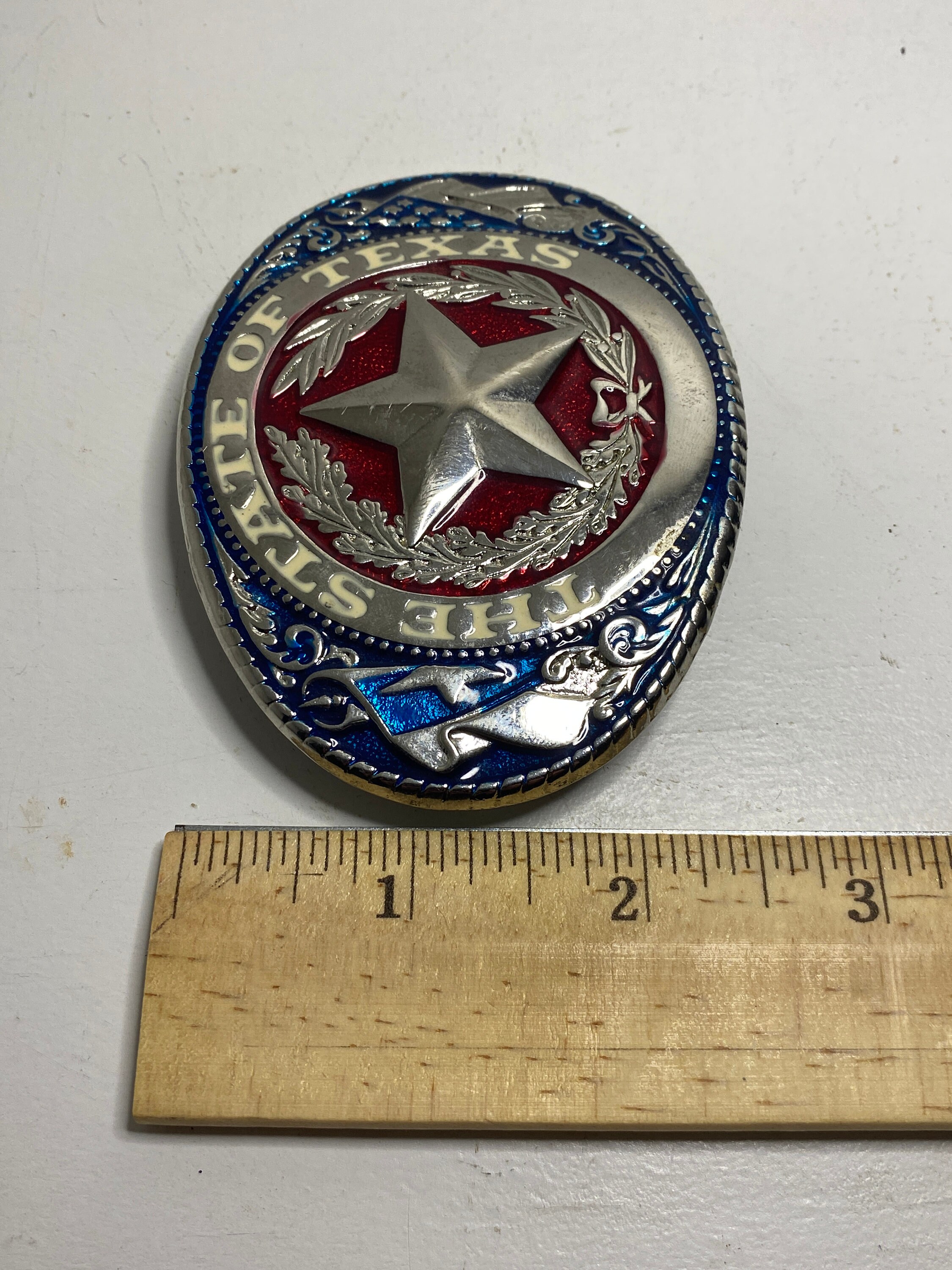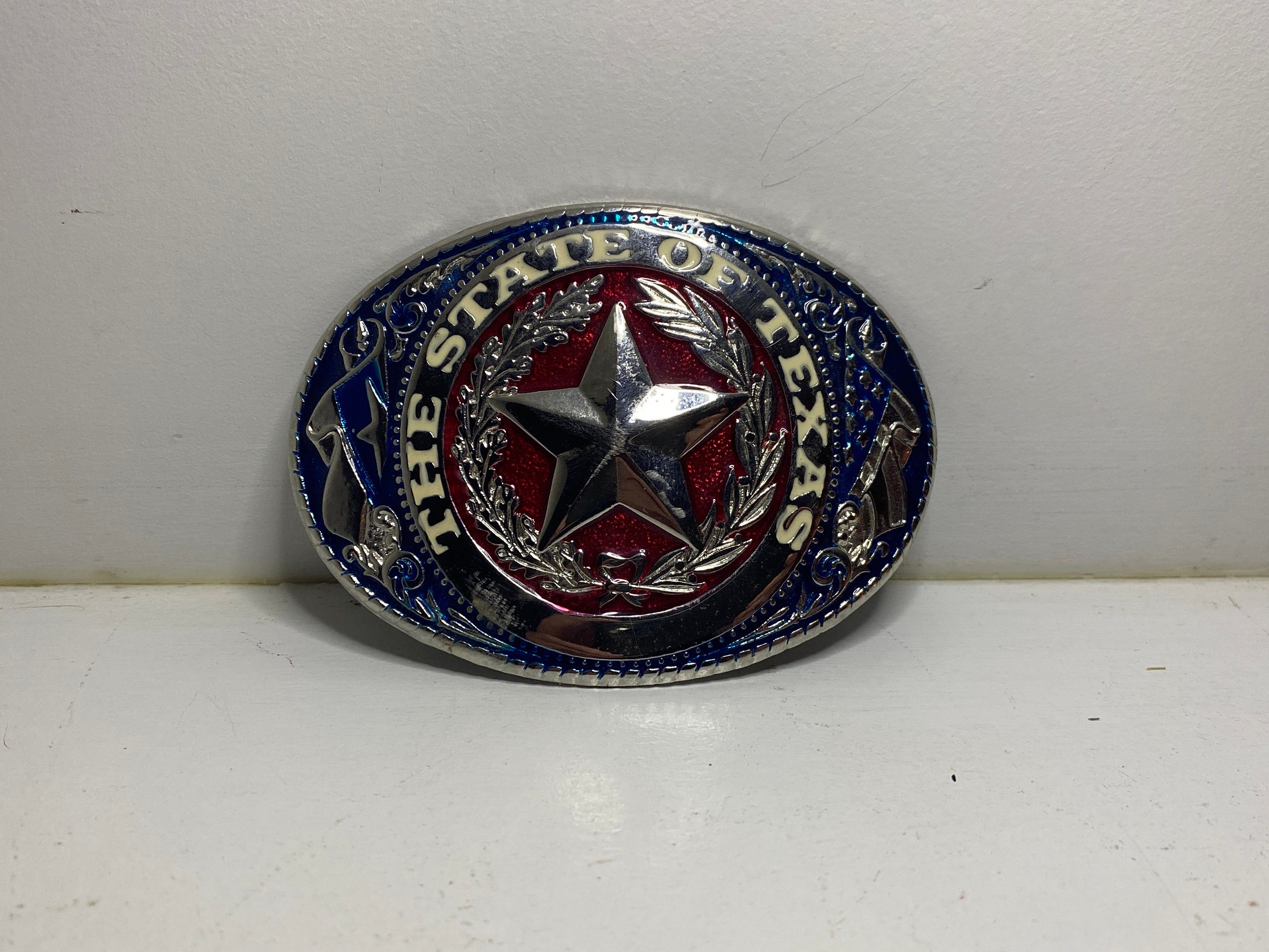 What a great find we have here. A nice big Texas belt buckle. A few scuffs to the surface but otherwise in fantastic condition. "The State of Texas."