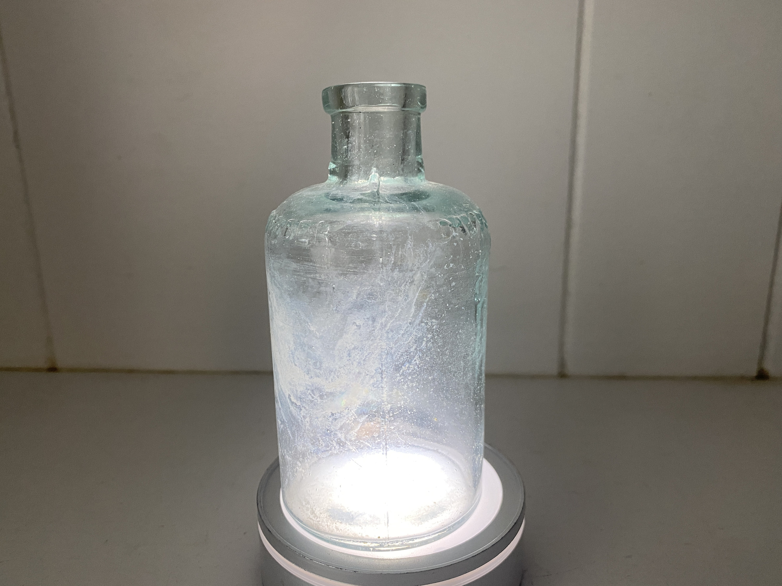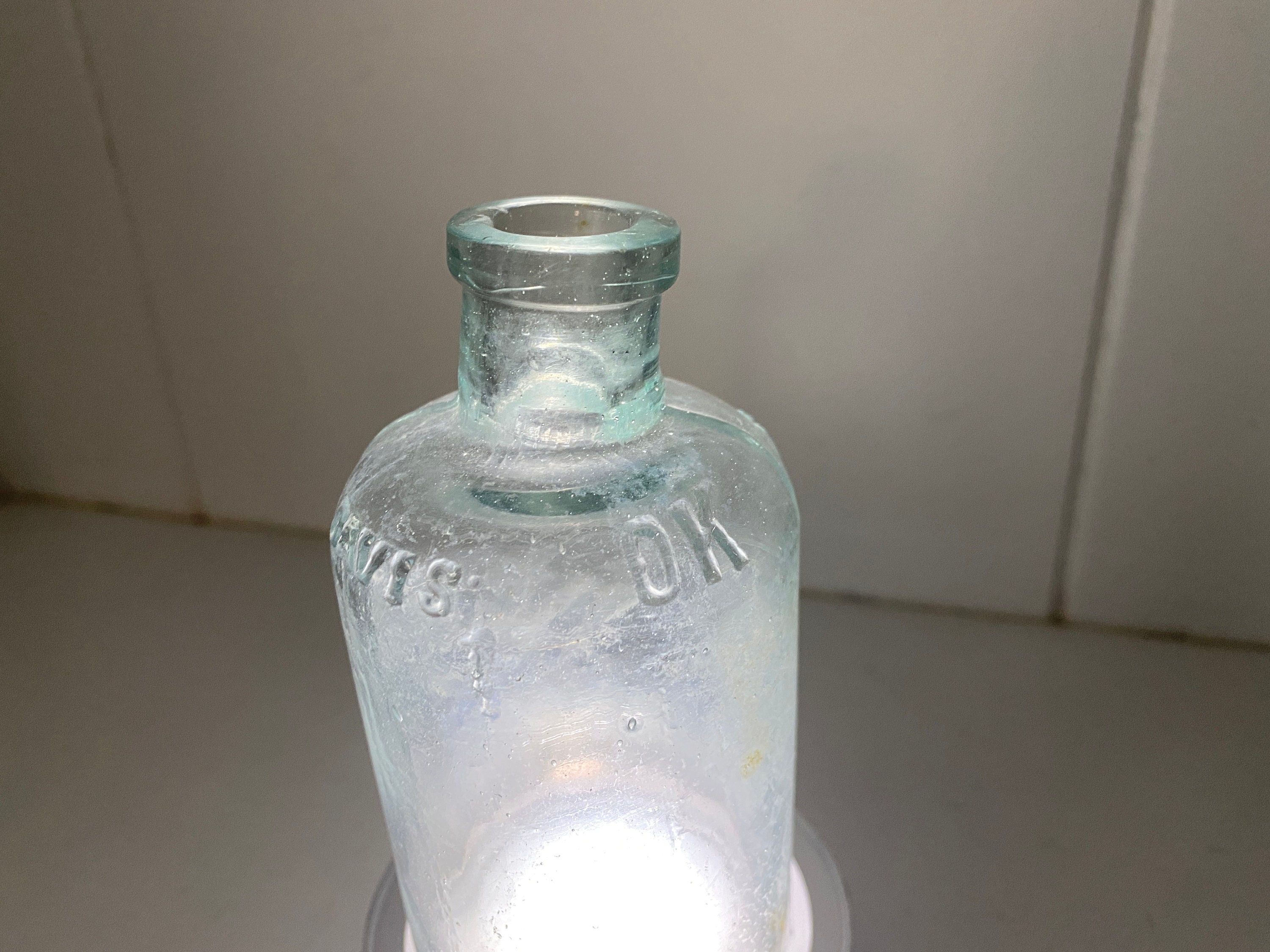Antique 4.5 inch baking powder bottle from the early 1900s. Perfect for the laundry room.