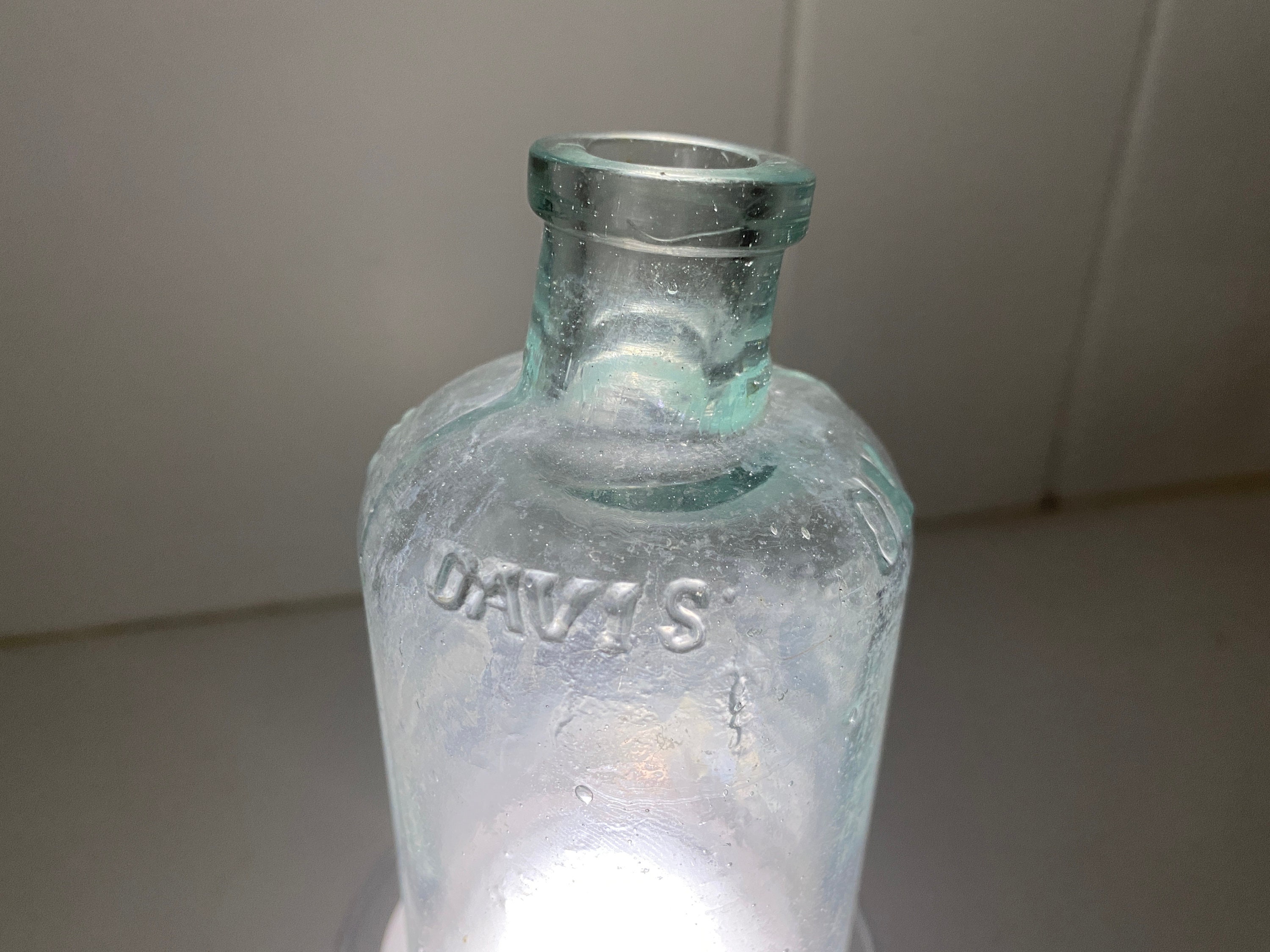 Embossed (raised) lettering on the glass reads "Baking Powder" on one side and "Davis OK" on the other.