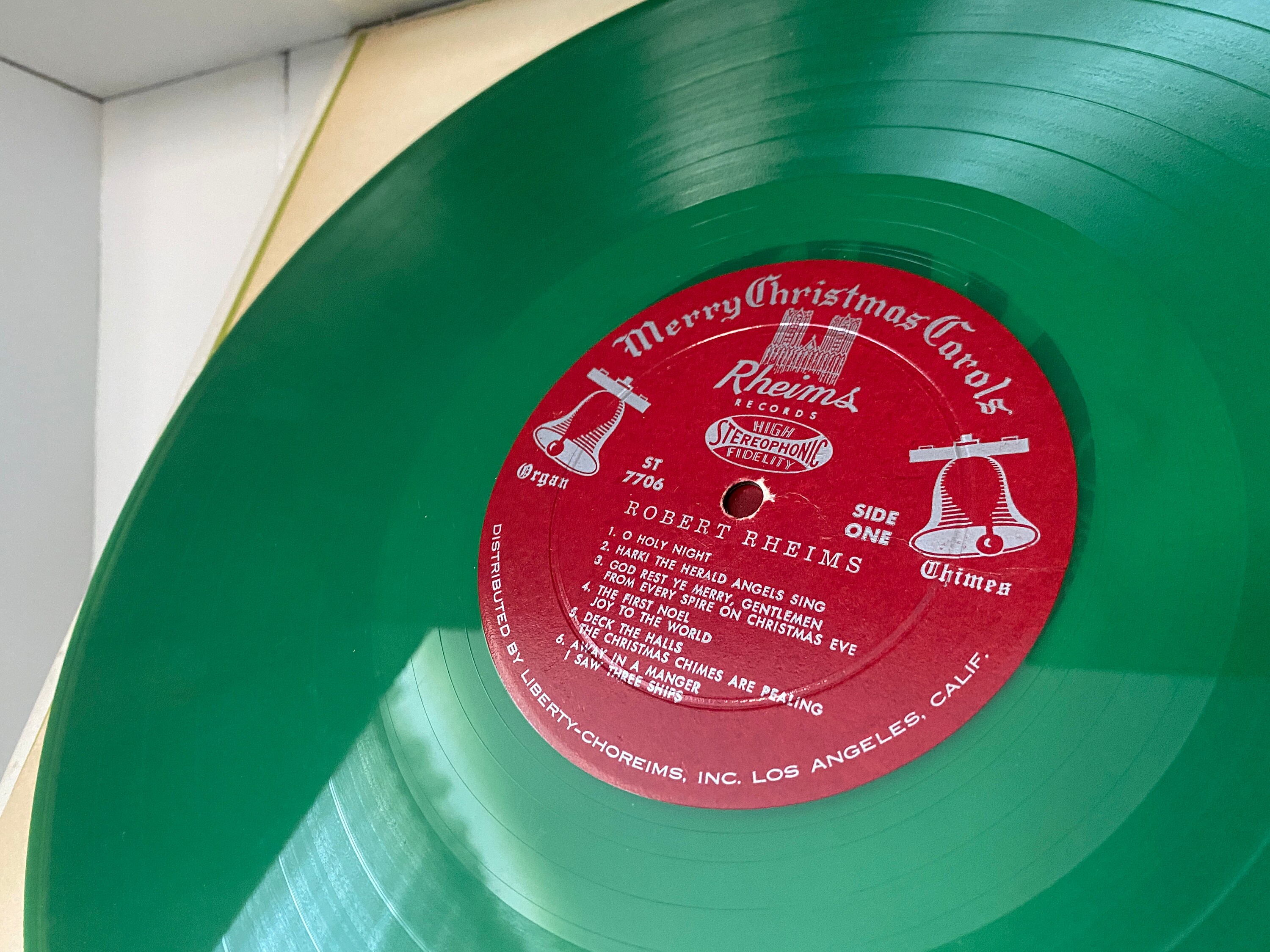 Vintage Green Vinyl Record of Christmas Carols