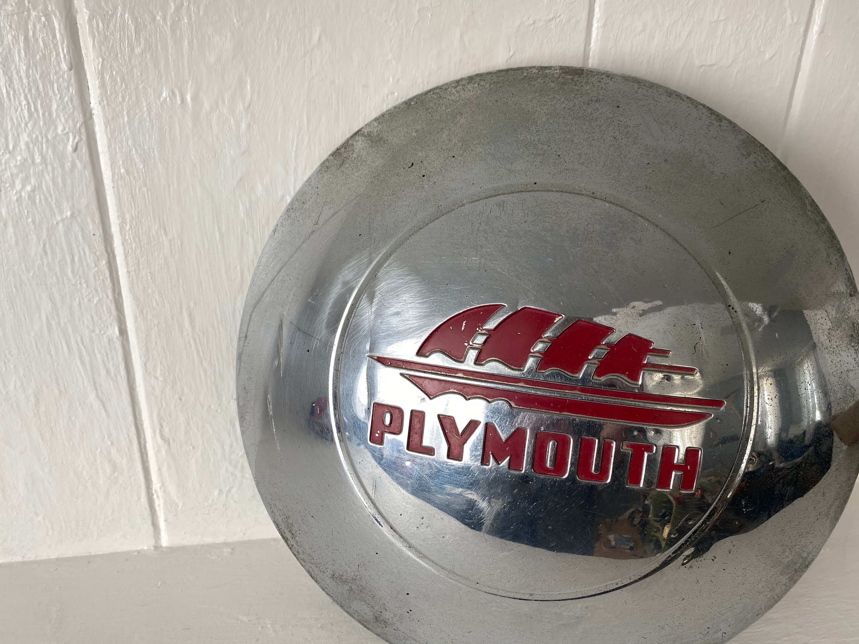 Original “Red Ship Logo” Plymouth hubcap / wheel cover. Manufactured from 1946 to 1948.