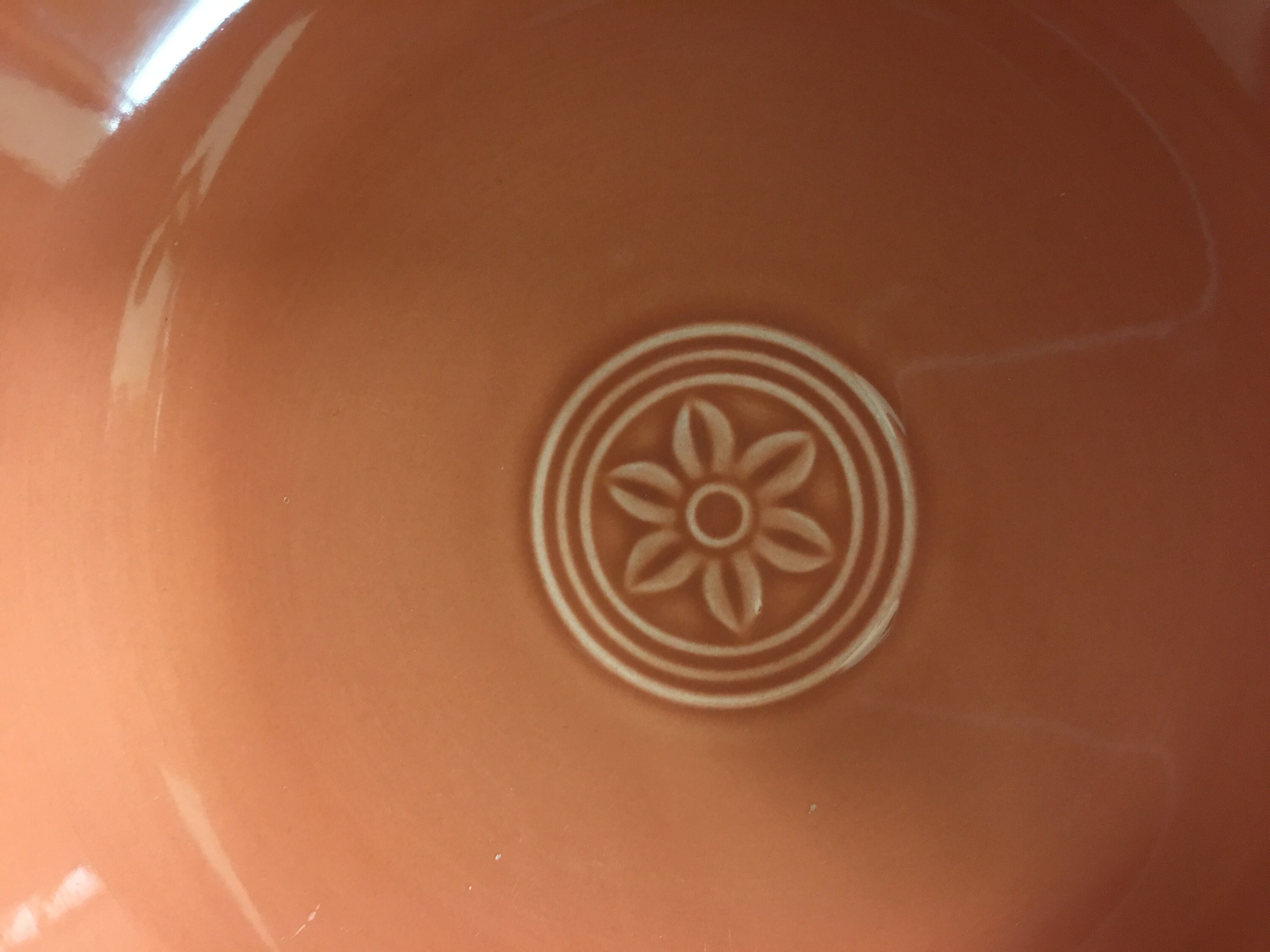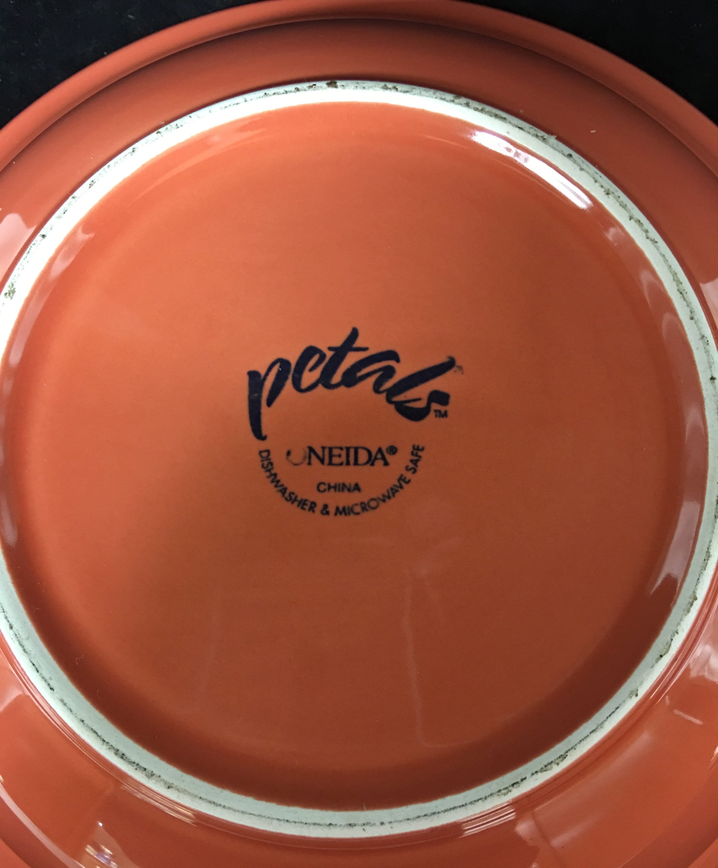 Vintage Oneida "Petals" Pattern Vegetable Bowl, now retired. Terra-cotta color, this bowl is both microwave and dishwasher safe. It has retained its southwestern color. No chips or cracks. Maker's mark clearly visible.