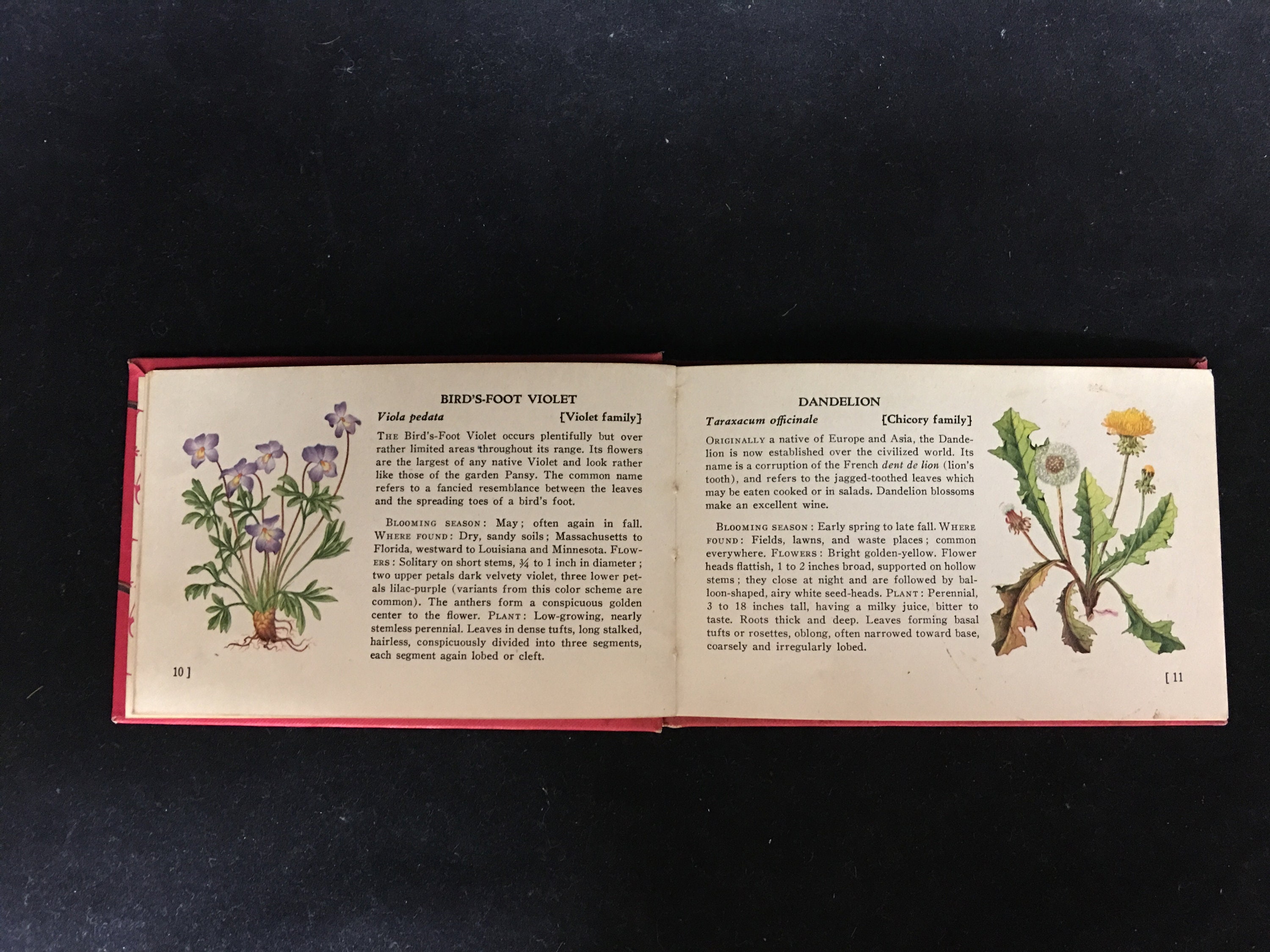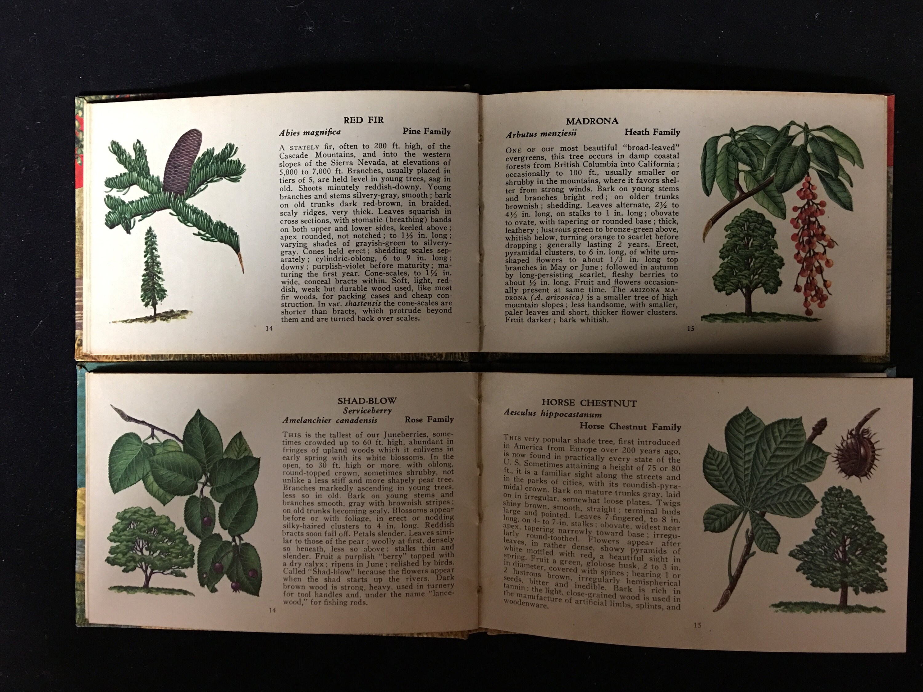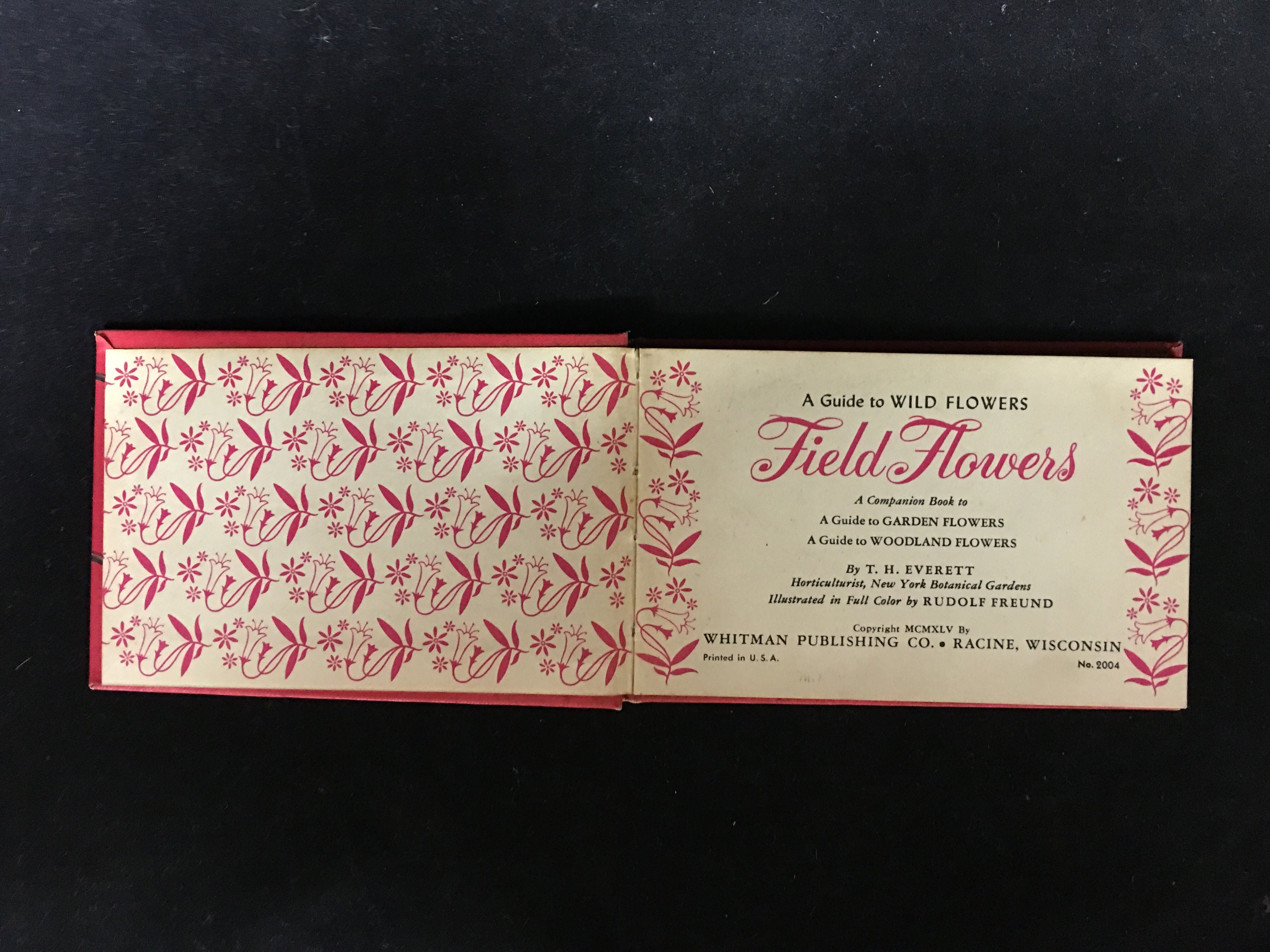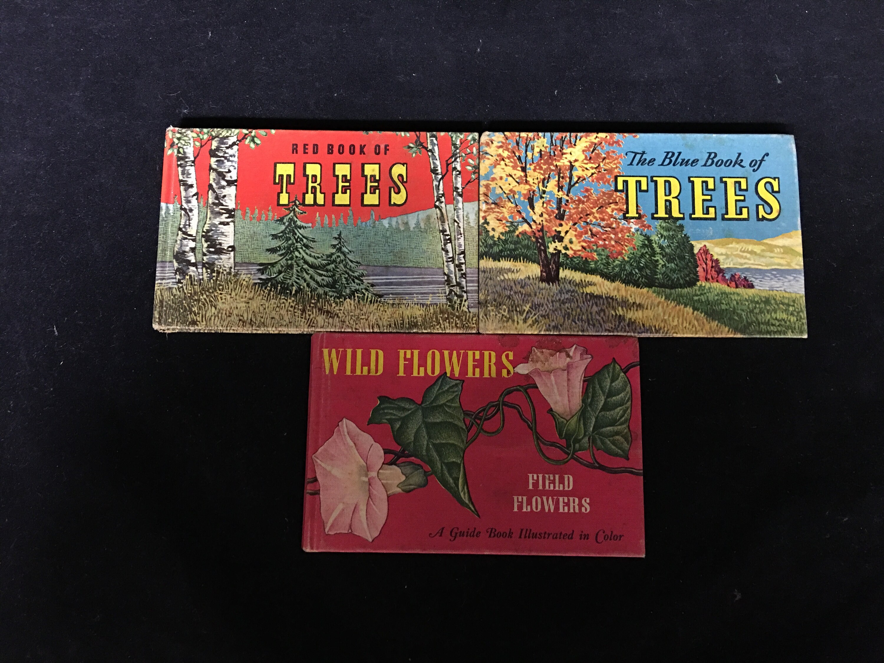 Set of 3 1940s Whitman Publishing Company (Racine, WA) Guides: The complete set of two, "The Red Book of Trees" and "The Blue Book of Trees" and "Wild Flowers, Field Flowers." Each with 60 pages and fully intact. Minimum page foxing and cover wear appropriate for age. Nice addition to a collection.