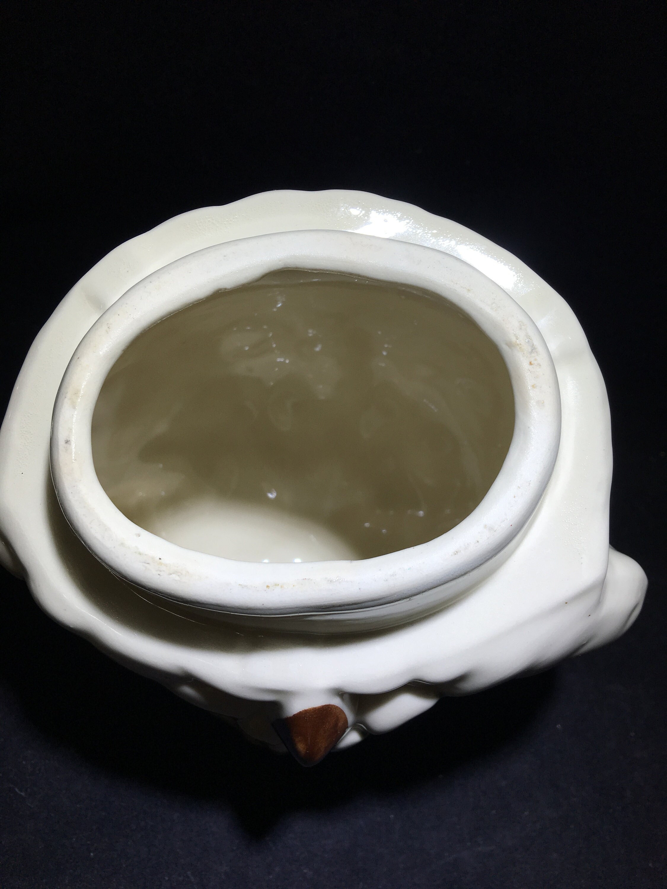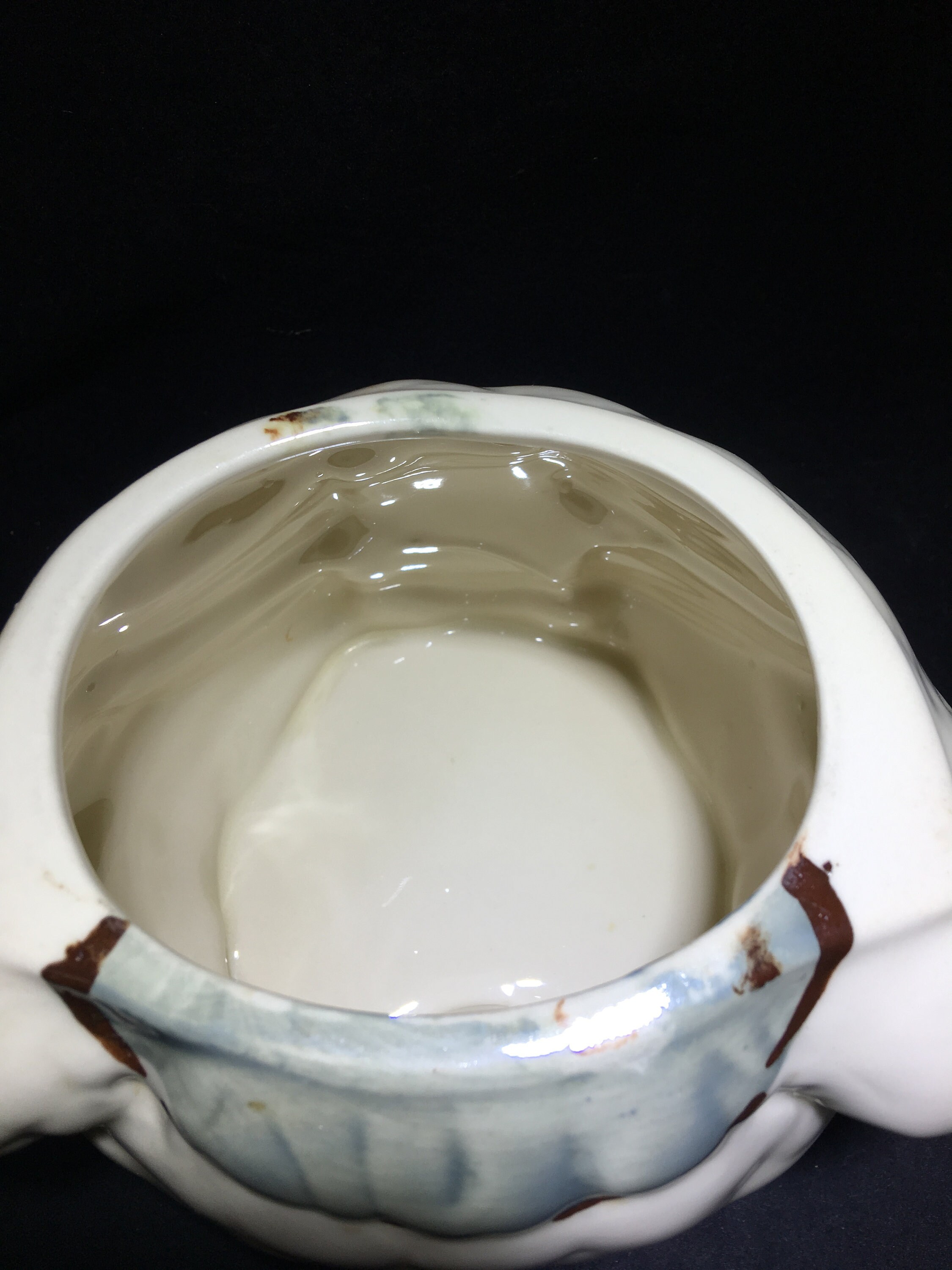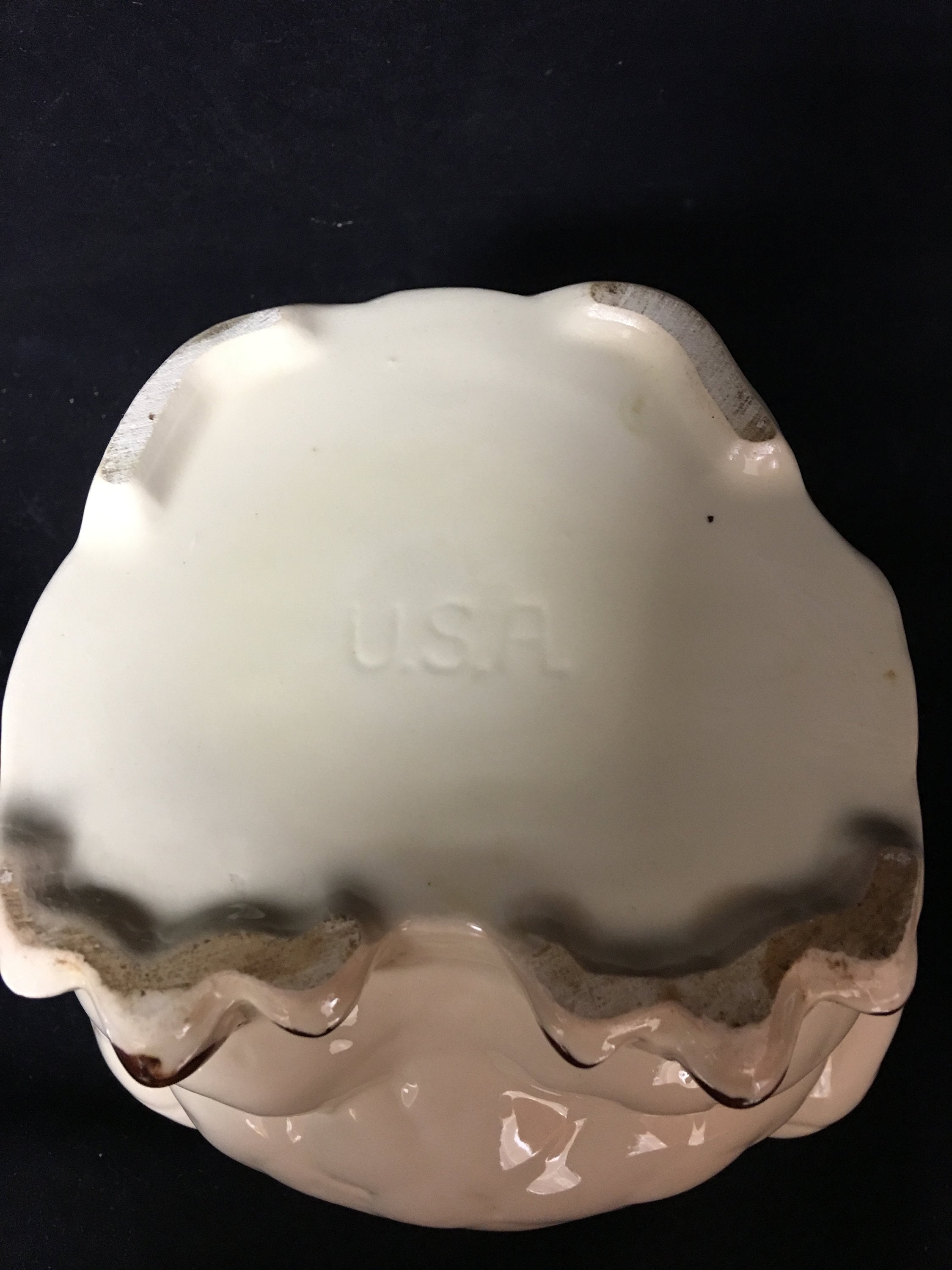 Original production vintage Shawnee Pottery Winking Owl Cookie Jar who wisely keeps one eye on its cookie treasures. This cookie jar is hand-painted and produced in the USA. It is in excellent condition, no chips or cracks, with a very clean interior. Minor impactions are related to firing production. See photos for details.