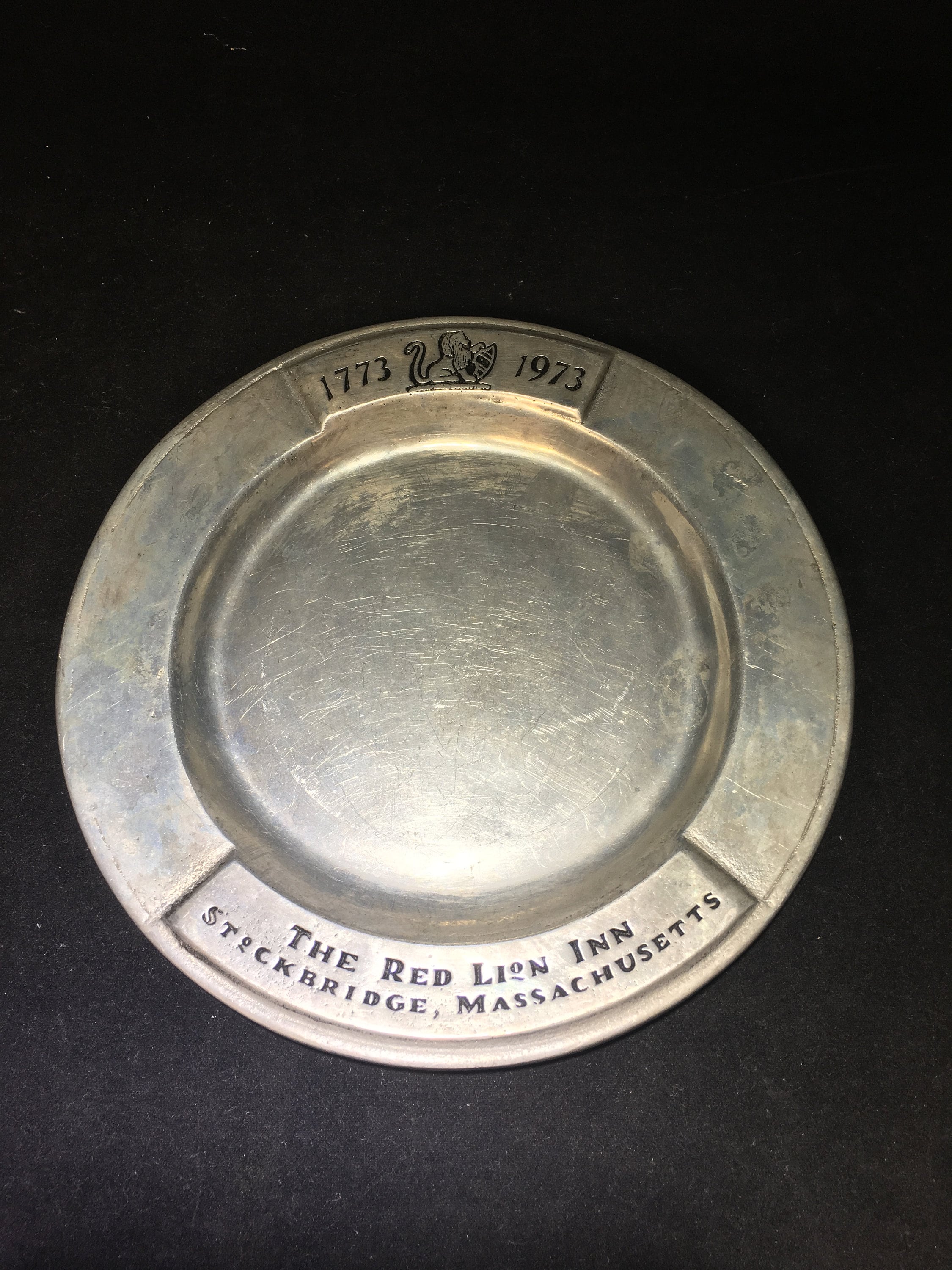 7.5" Pewter Commemorative Plate by Wilton. See photos for minor condition issues. Red Lion Inn is one of the longest operating Inns in New England.