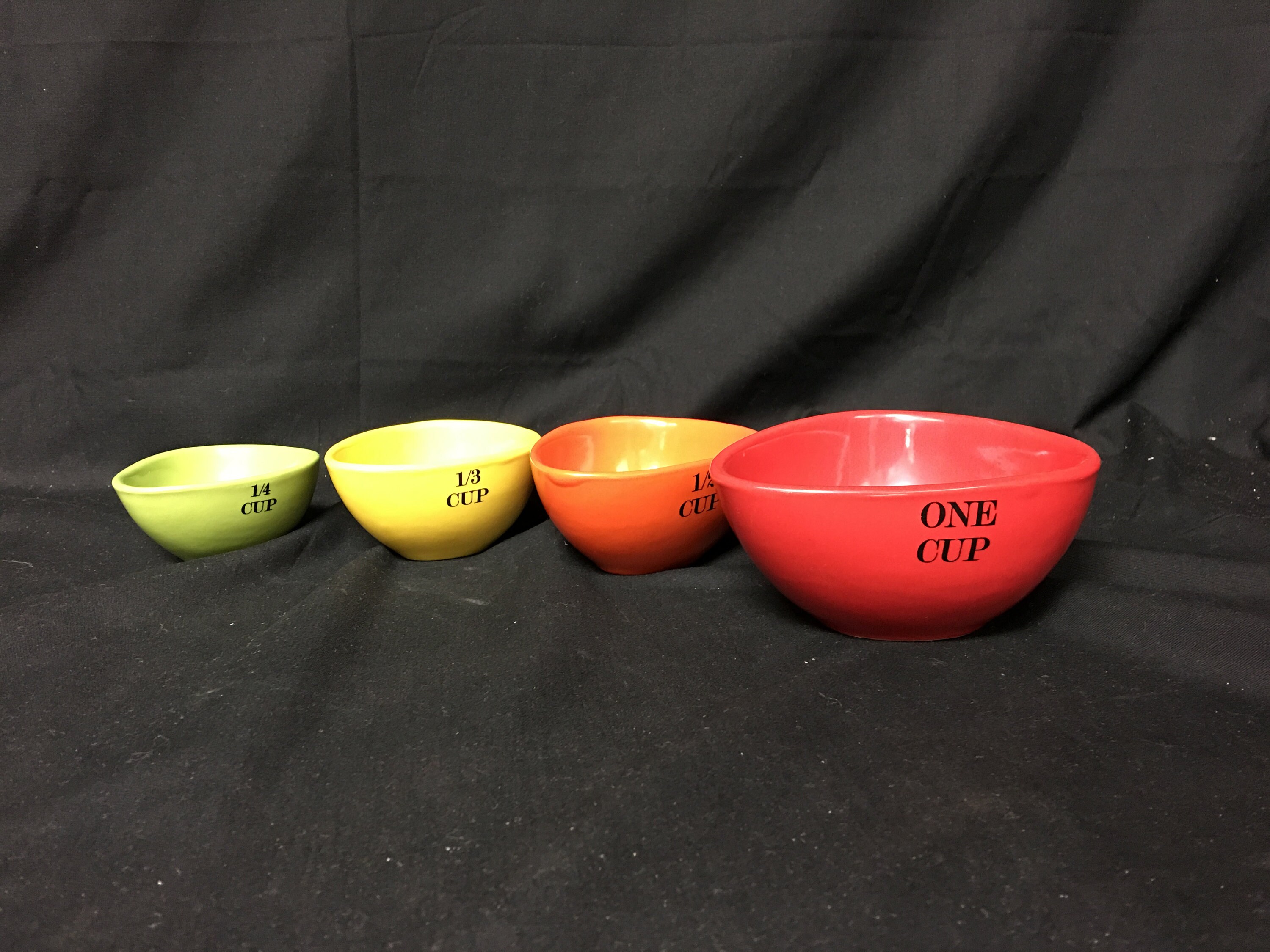 Adorable set of four (4) vintage ceramic handled measuring cups: