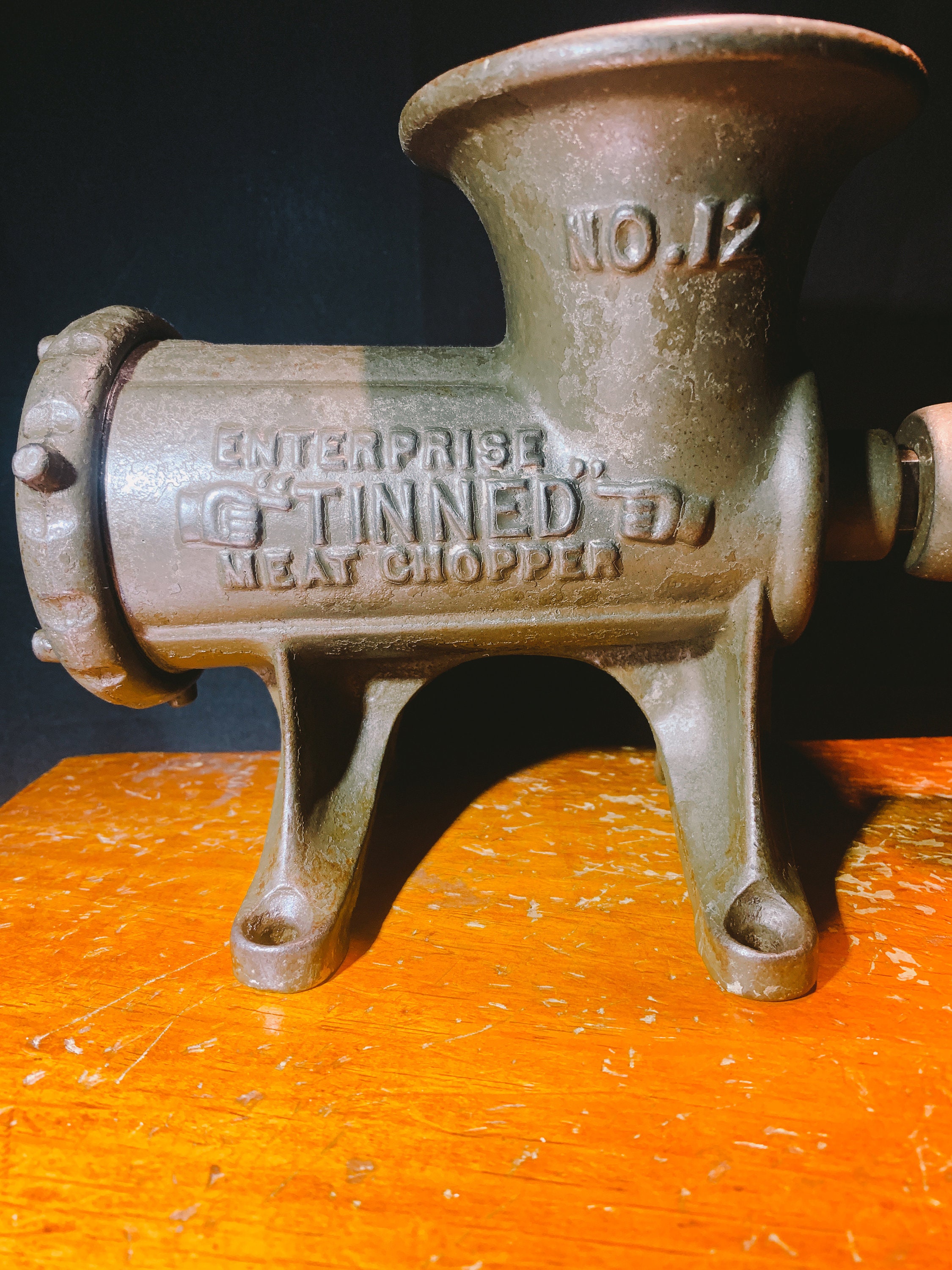 The official name of this meat grinder is the ENTERPRISE TINNED MEAT CHOPPER NO. 12