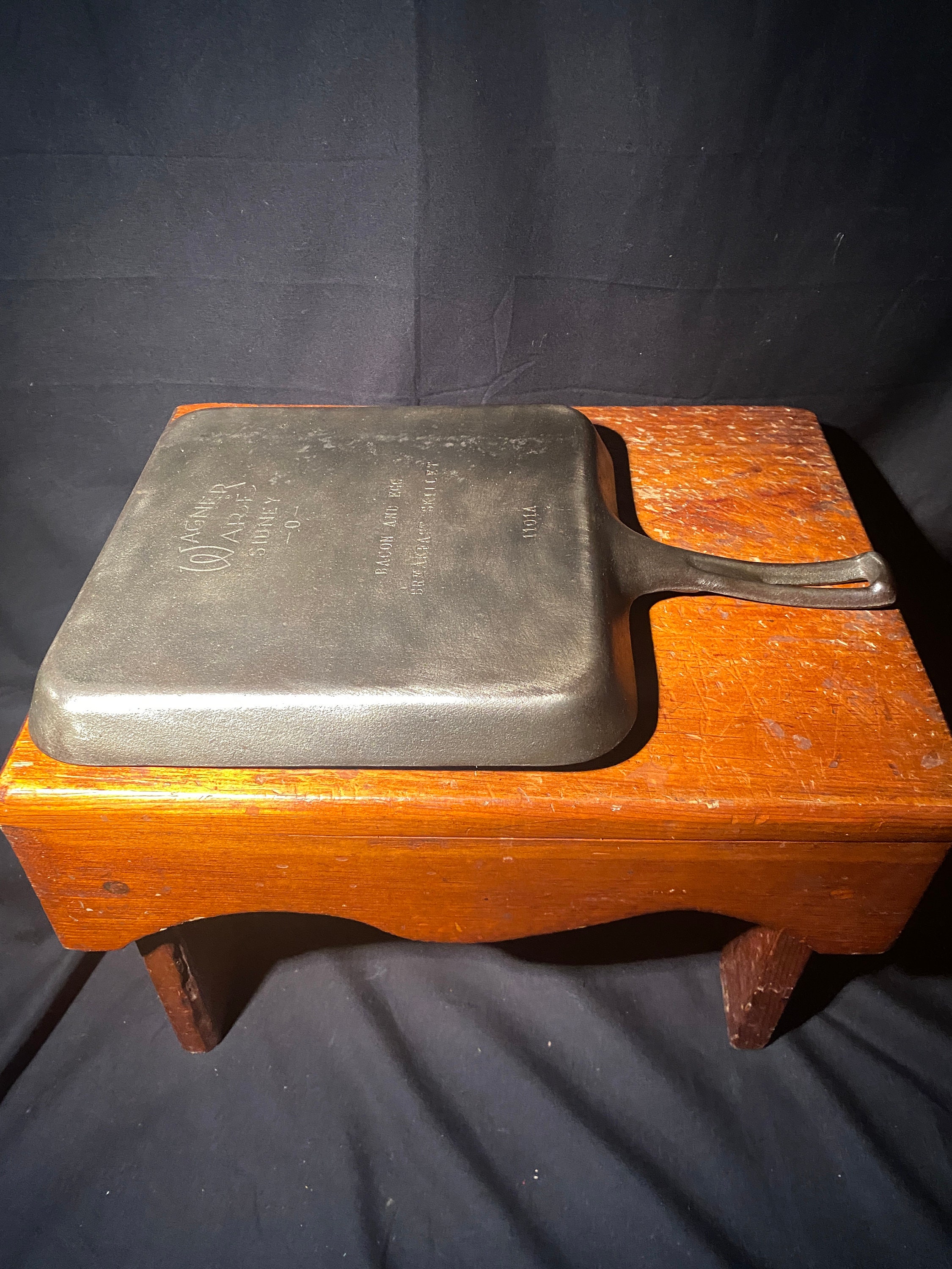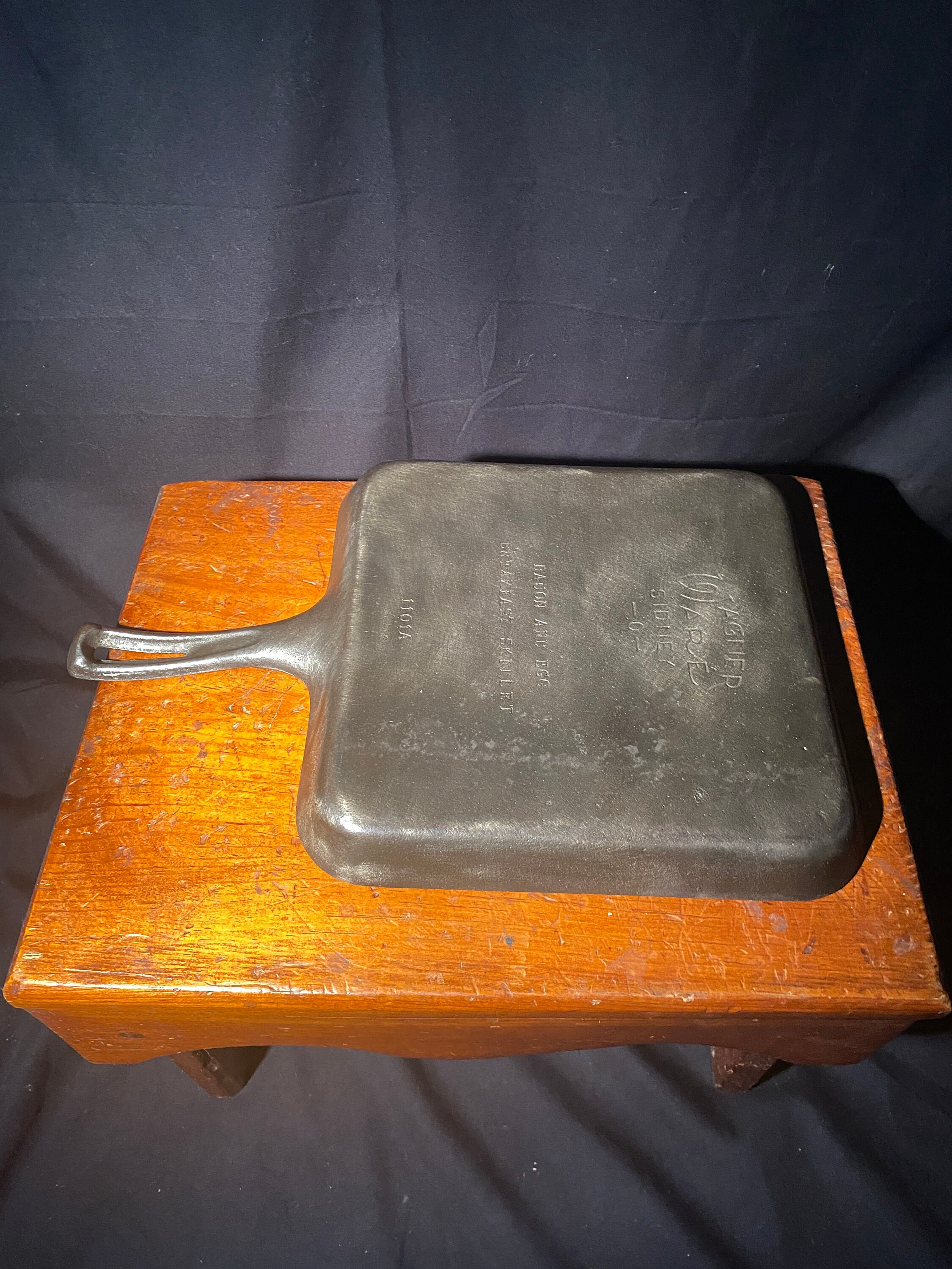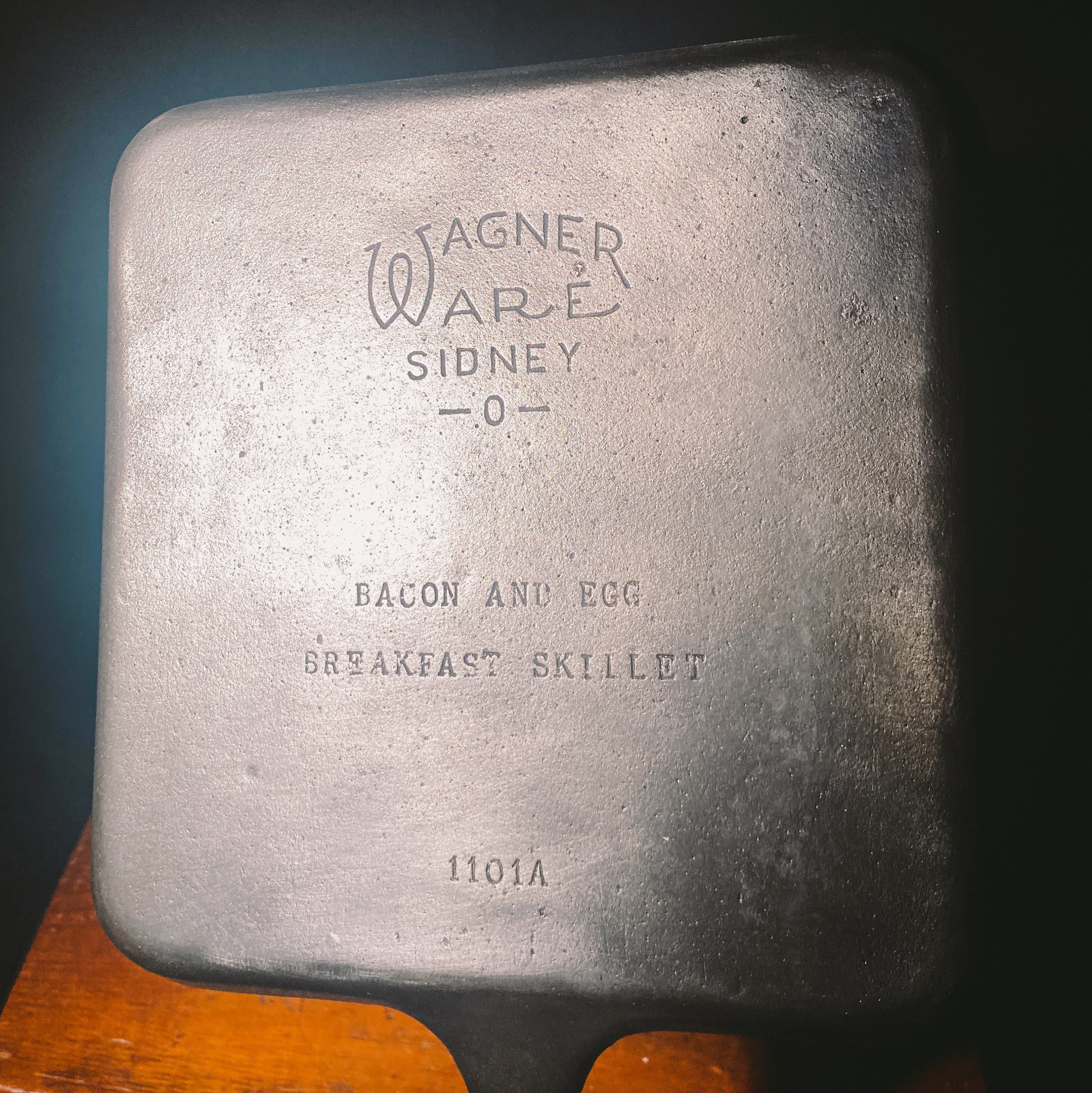 This breakfast skillet is in primo condition. It has been stripped down to its bare essence. Ready to be seasoned and put back to work in the kitchen. This Bacon and Egg Breakfast skillet is one of Wagners best. Comes in handy a lot in the kitchen.