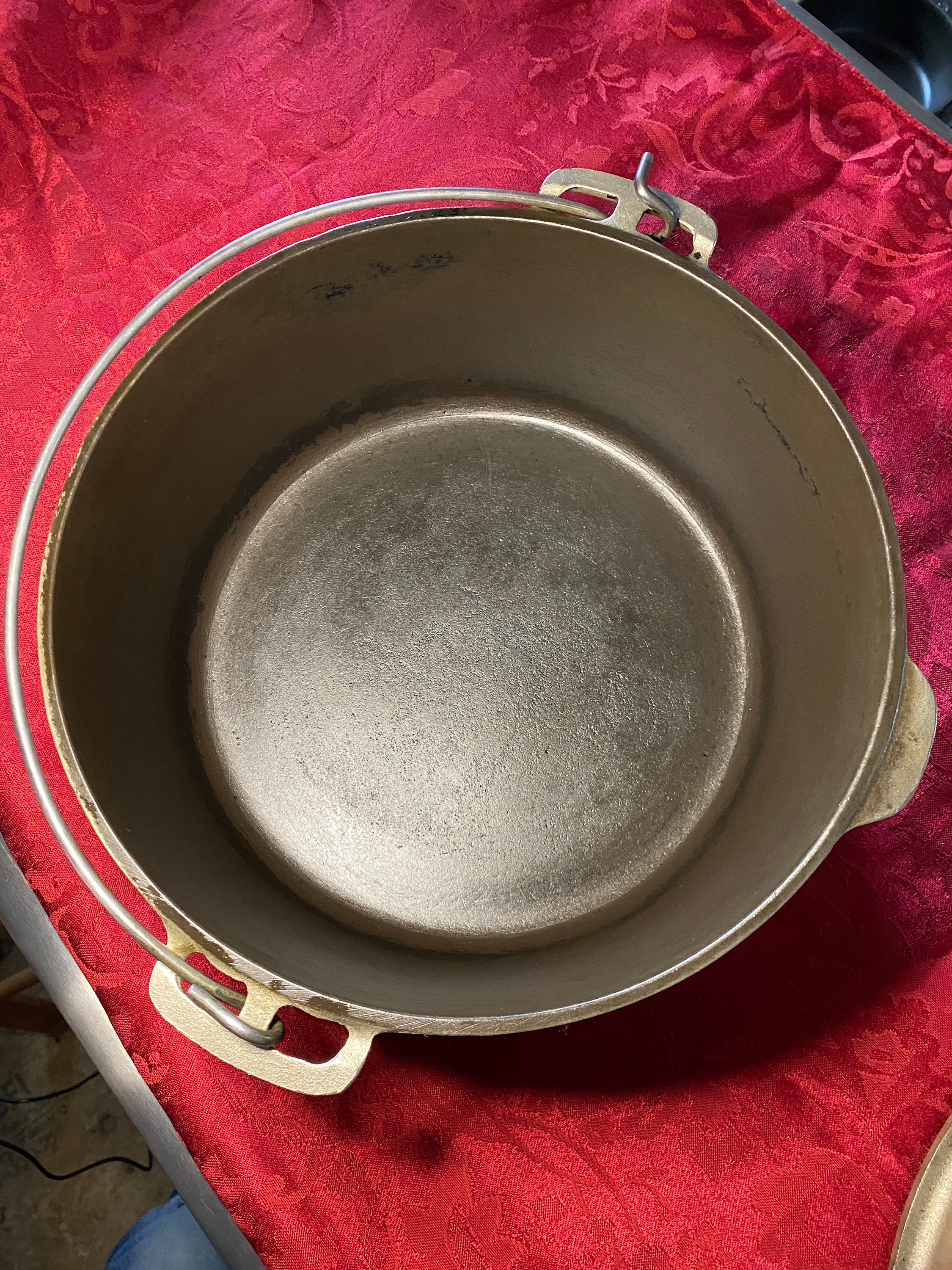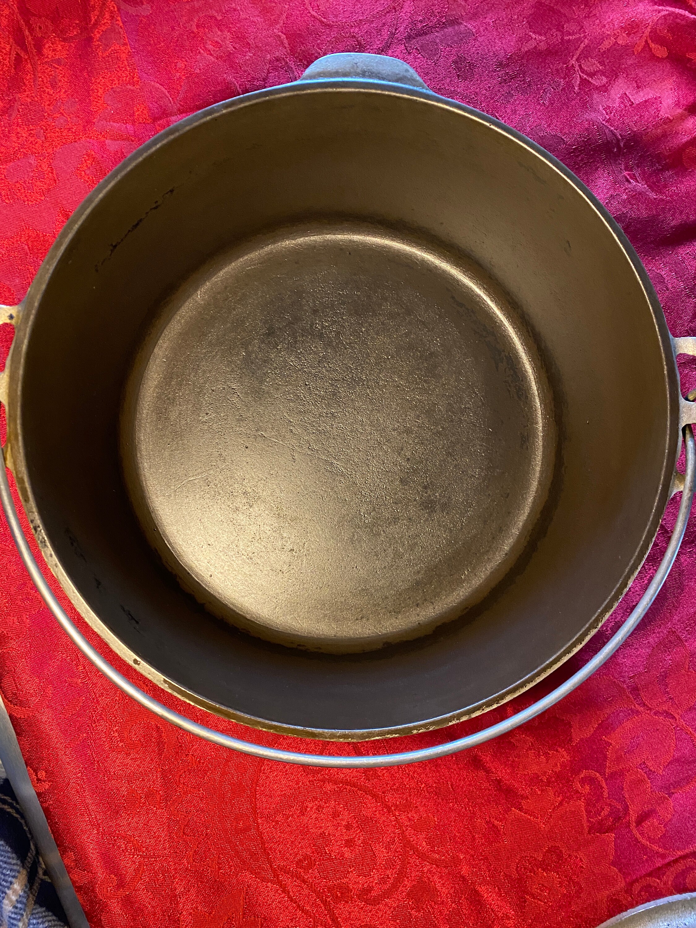 Amazing. Just look at the pictures. Some obvious discoloration which will even itself out in time with plenty of use. There is a wobble to it which you can see for yourself in the VIDEO ABOVE. As you can see, the wobble is minor and obviously these things are to be expected on a roaster this old. This type of imperfection only becomes an issue if you are planning to use it on a glass top, flat stove but I wouldn't recommend using ANY cast iron on a glass electric stove because cast iron can scratch the glass.