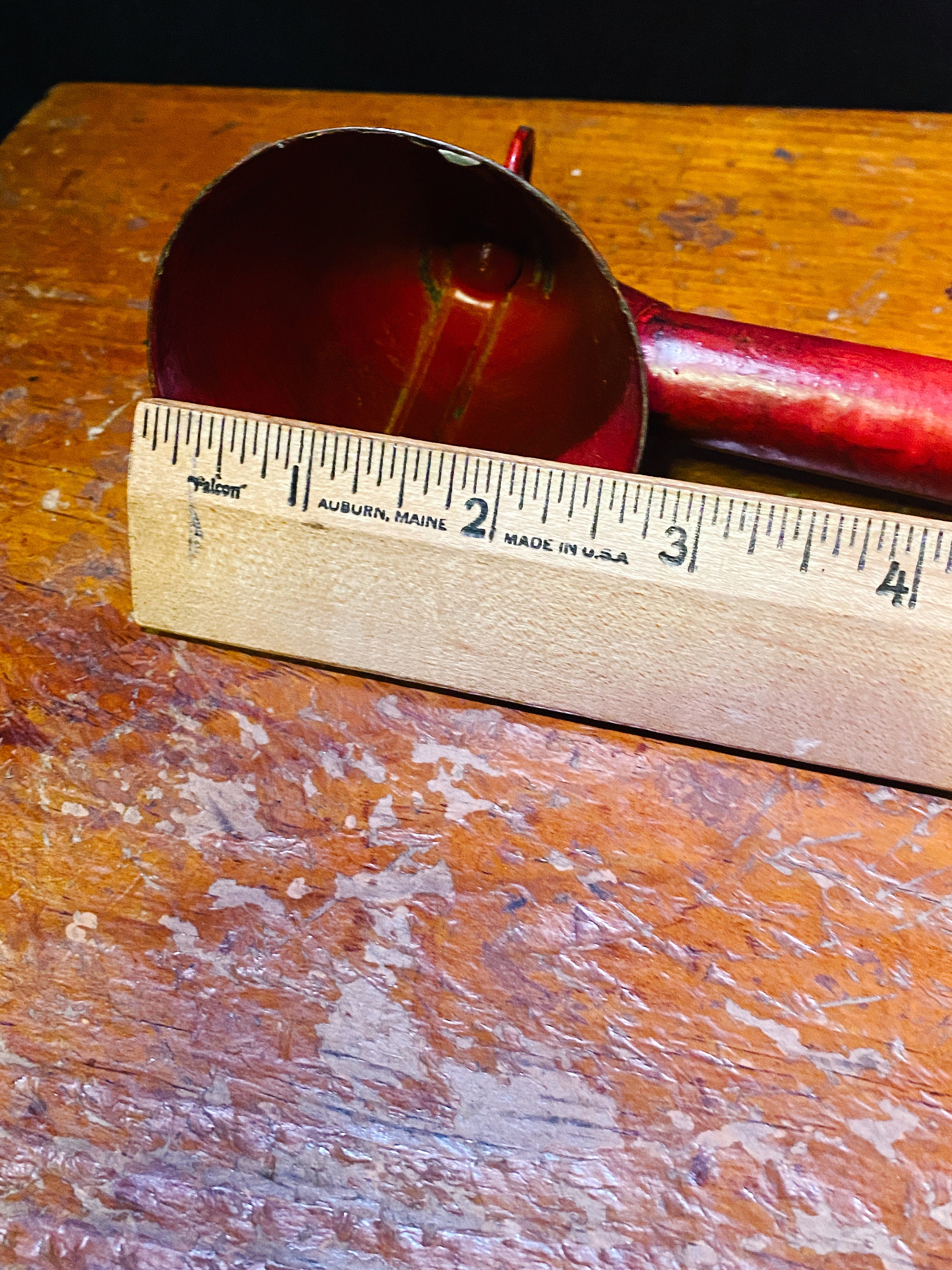 This was a cool little find from last week. It's some sort've primitive ice-cream scoop from the 1800s. What makes this one cool is that I've never seen a painted one before. Only the bare tin ones. My guess is that someone painted it for fun or maybe to try to sell it as folk art. Probably in the 90s, possibly earlier. Anyway, I think it looks great and the patent date on the bottom of May 3, 1876 is just amazing. What a unique little piece of rustic decor to have in the kitchen.
