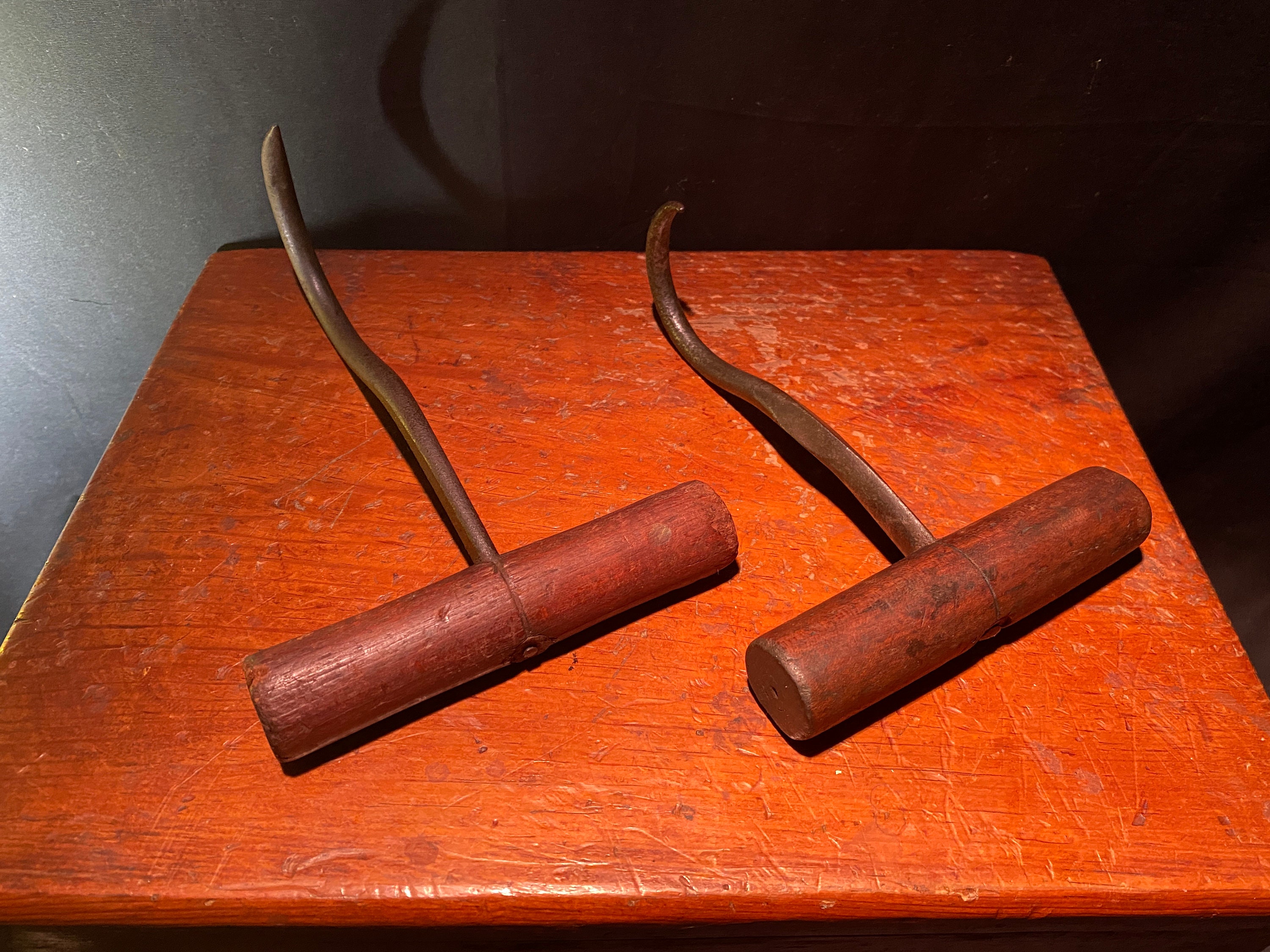 Primitive Wooden Handle Farm Hooks